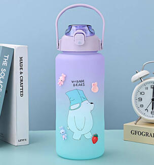 ↳ Botella de agua esmerilada de color degradado de viaje portátil de 2000 ml.